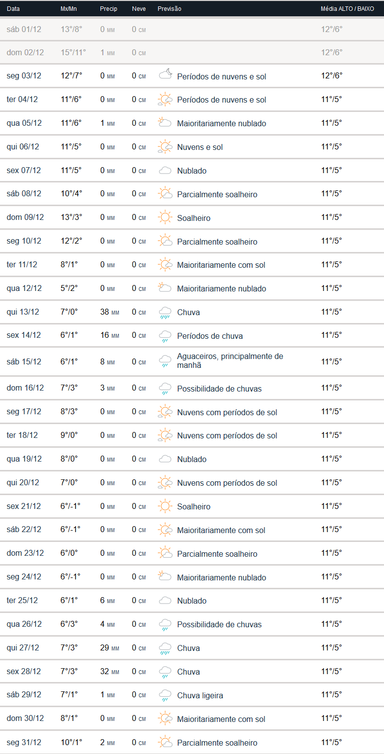 Previsão do tempo para Dezembro de 2018 Previsão AccuWeather