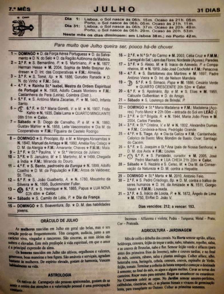 É o 7º mês do ano, e os dias começam a diminuir. 38m em Lisboa e 42m no Porto !